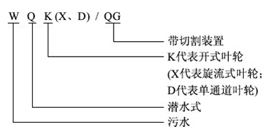 ■ WQK/QG型帶切割式潛水排污泵型號意義:
