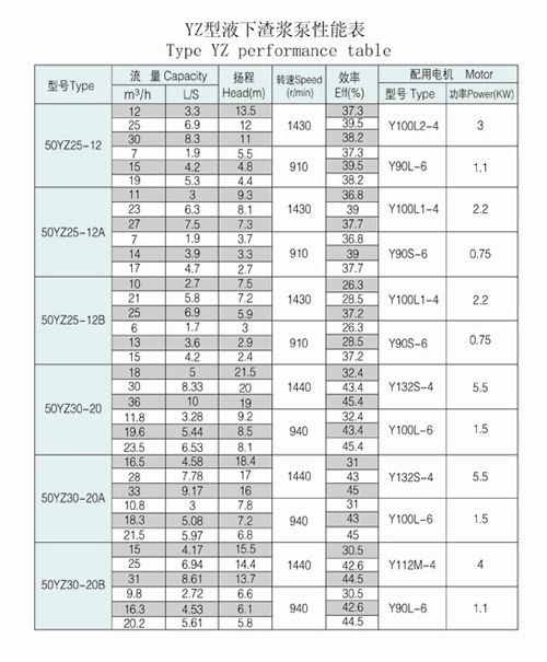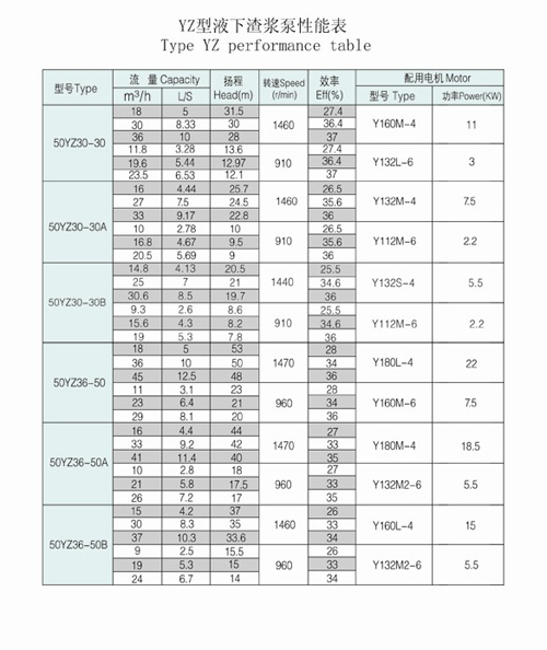 聚盛泵業(yè)YZ型液下式溫州渣漿泵參數(shù)